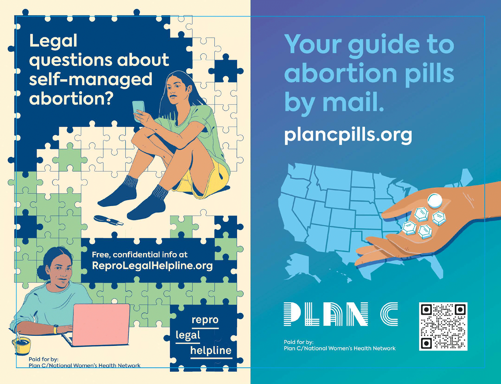 Plan C invited If/When/How to share the ad space to highlight the organization’s Repro Legal Helpline, which provides legal information and advice to help people understand their rights and potential legal risks when self-managing an abortion.