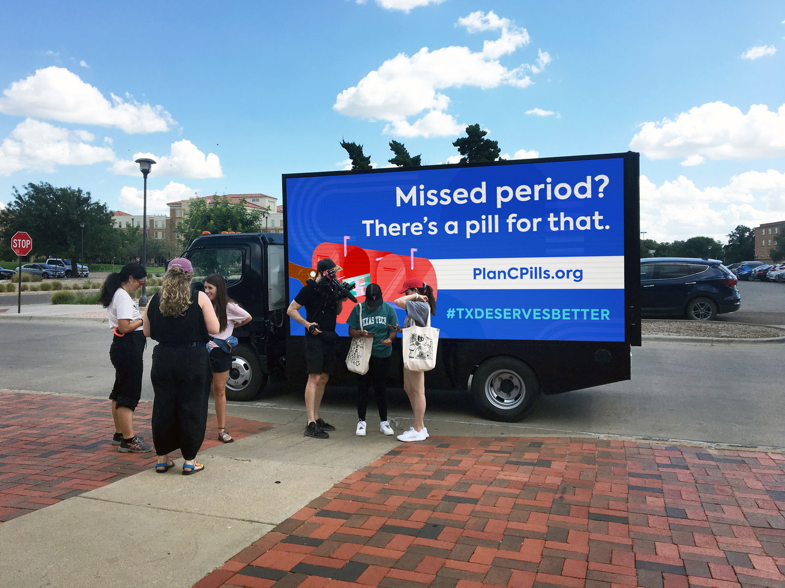 Our final days of road tripping were spent visiting West Texas A&M, Lubbock Christian University, Midland & Odessa Colleges, and UT Permian Basin. We handed out flyers and talked with more students, who approached the truck not with hostility (as our friends & supporters had feared when they heard we were taking our abortion billboard to the “Bible Belt”) but with genuine curiosity, interest and gratitude. They pocketed the flyers and stickers, scanned our QR codes and signed up for our Ambassadors program. There was a heaviness to some conversations as these Texans realized SB8's looming start date--but we were able to provide some hope as we described the power and independence of abortion by mail.