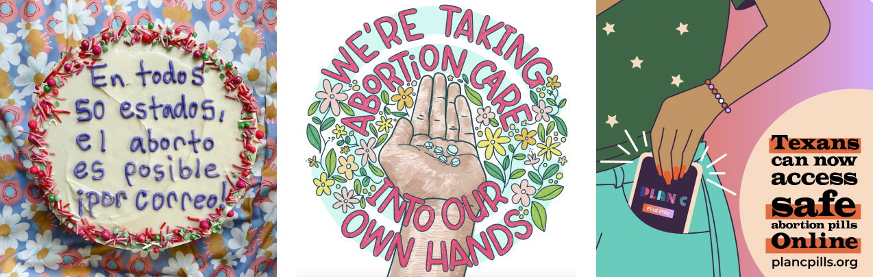 In response to this developing situation of a statewide “abortion desert” on September 1st, Plan C took action: first, securing a mobile billboard truck that would traverse West Texas in the final days of August, and second by collaborating with a handful of Texas artists to creatively interpret online abortion pill access and abortion by mail in Texas, commissioning original artwork that would be easy to amplify and repost.